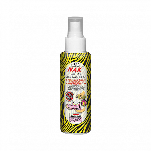 اسپری الکلی بوگیر کفش ناک NAK فرموله شده با مواد آنتی باکتریال باعث از بین رفتن باکتریهای مولد بوی بد کفش شده و به علت قابلیت بوگیری فاقد اسانس خوشبو کننده میباشد و باید حداقل ۱۲ ساعت قبل از استفاده داخل کفش و زیر کفی ها اسپری شود که هنگام استفاده رطوبت حاصل از استفاده از اسپری کاملا خشک شده باشد.