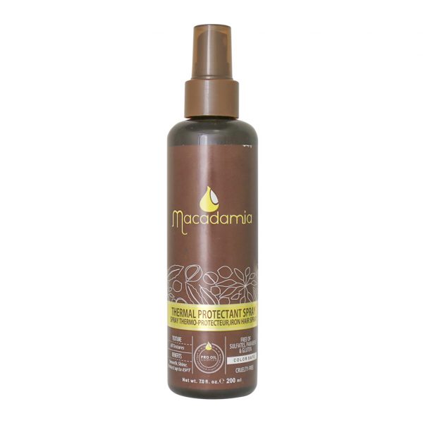 اسپری محافظ حرارتی ماکادمیا مناسب برای استفاده پیش از سشوار، اتومو، صاف کنندهها و فرکنندهها است و از سوختگی و وز شدن مو در برابر وسایل حرارتی جلوگیری میکند.