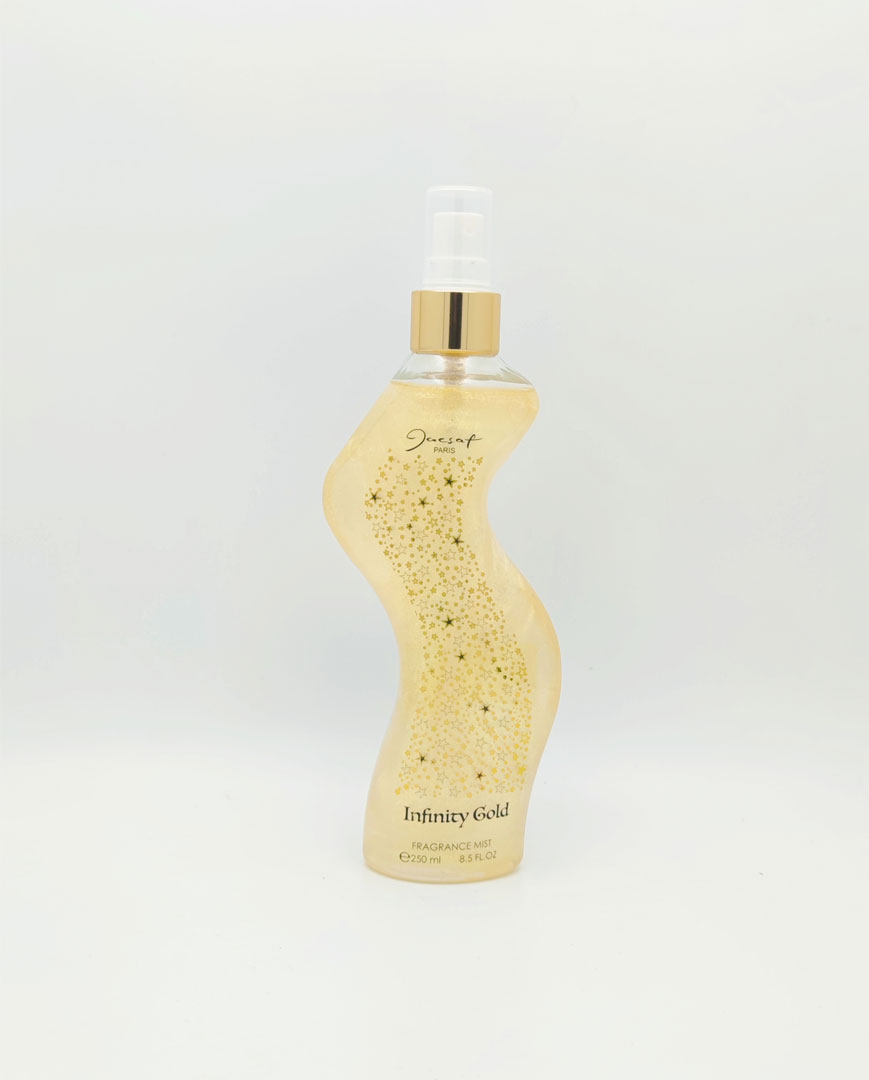 ژکساف برند مشهور ایرانی که بسیار خوش آواز بوده است به تازگی اقدام به تولید بادی اسپلش ها نیز کرده است تا محصولات خود را یک سطح نیز بالاتر ببرد و تمام محصولات خشبو کننده را سعی کند در بر بگیرد بادی اسپلش زنانه شاین اینفینیتی گلد ۲۵۰ میل ژک ساف دارای رایحه ای از وانیل شرقی مخصوص بانوان است. این رایحه ترکیبی ظریف و خوش طعم بادام سوخته به عنوان ماده اصلی است ، عطر تازه ی گل ها در قلب خود رایحه ای دلچسب و لذیذ را برای شما به ارمغان می آورد، و همچنین این محصول درخشان بوده است. شما با استفاده از این محصول از خود بانویی جسور و جذاب نیز می سازید. شما به محض اسپری این بادی اسپلش نت آغازین شروع به کار می کند که این نت دارای رایحه گلابی و توست سیاه بوده است. بعد از گذشت مدت زمانی نت میانی جایگزین نت آغازین می شود که این نت دارای رایحه گل زنبق، یاس و شکوفه پرتقال بوده است. بعد از گذشت مدت زمان زیادی نت آغازین از راه می رسد و جایگزین دیگر نت ها می شود و این دارای رایحه پرالین، وانیل، دانه تونکا و پاچولی بوده است.