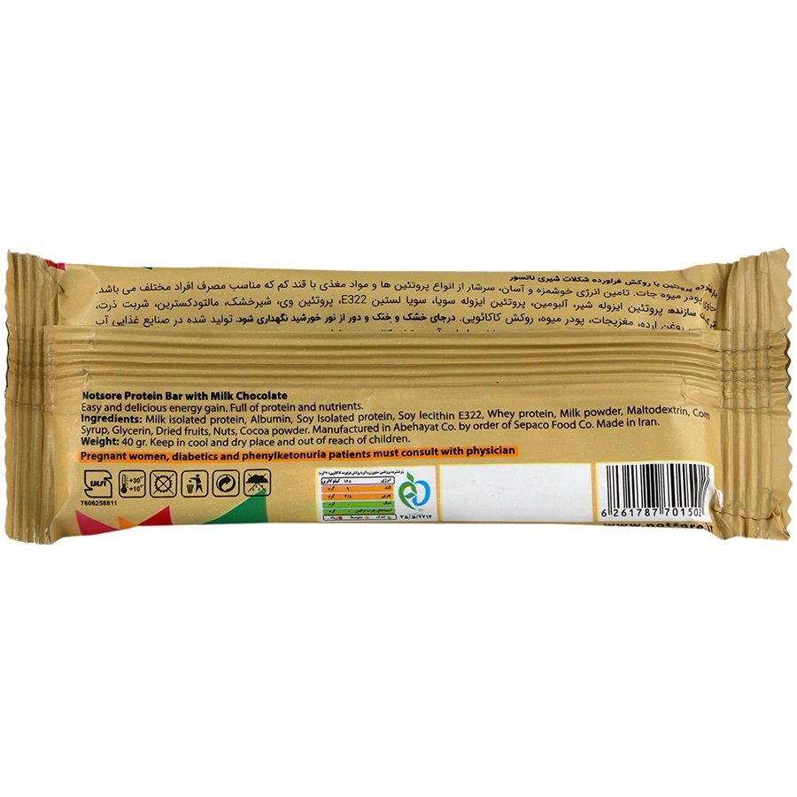 بار فشرده پروتئین با روکش فراورده شکلات شیری ناتسور بدون قند