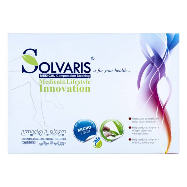 تکنولوژی جوراب واریس SOLVARIS به شکلی است که جوراب در قسمت تحتانی و مچ تنگ طراحی شده و هرچه بالاتر می اید گشاد تر میشود.این طراحی خاص موجب میشود.خون تجمع یافته در انتهای اندام به راحتی به سمت بالا حرکت کرده و به قلب بازگردد. استفاده از جوراب واریس(SOLVARIS) یکی از مطمئن ترین راهکارها برای جلوگیری از ایجاد واریس است.جوراب واریس{ زیر زانو SOLVARIS}در واقع دارویی است که باید ان را پوشید. استفاده از جوراب واریس برای مراقبت از دومین قلب بدن انسان می باشد که علاوه بر تاثیر در زیبایی باعث جلوگیری از مشکلات حاد متعاقب ان می باشد.