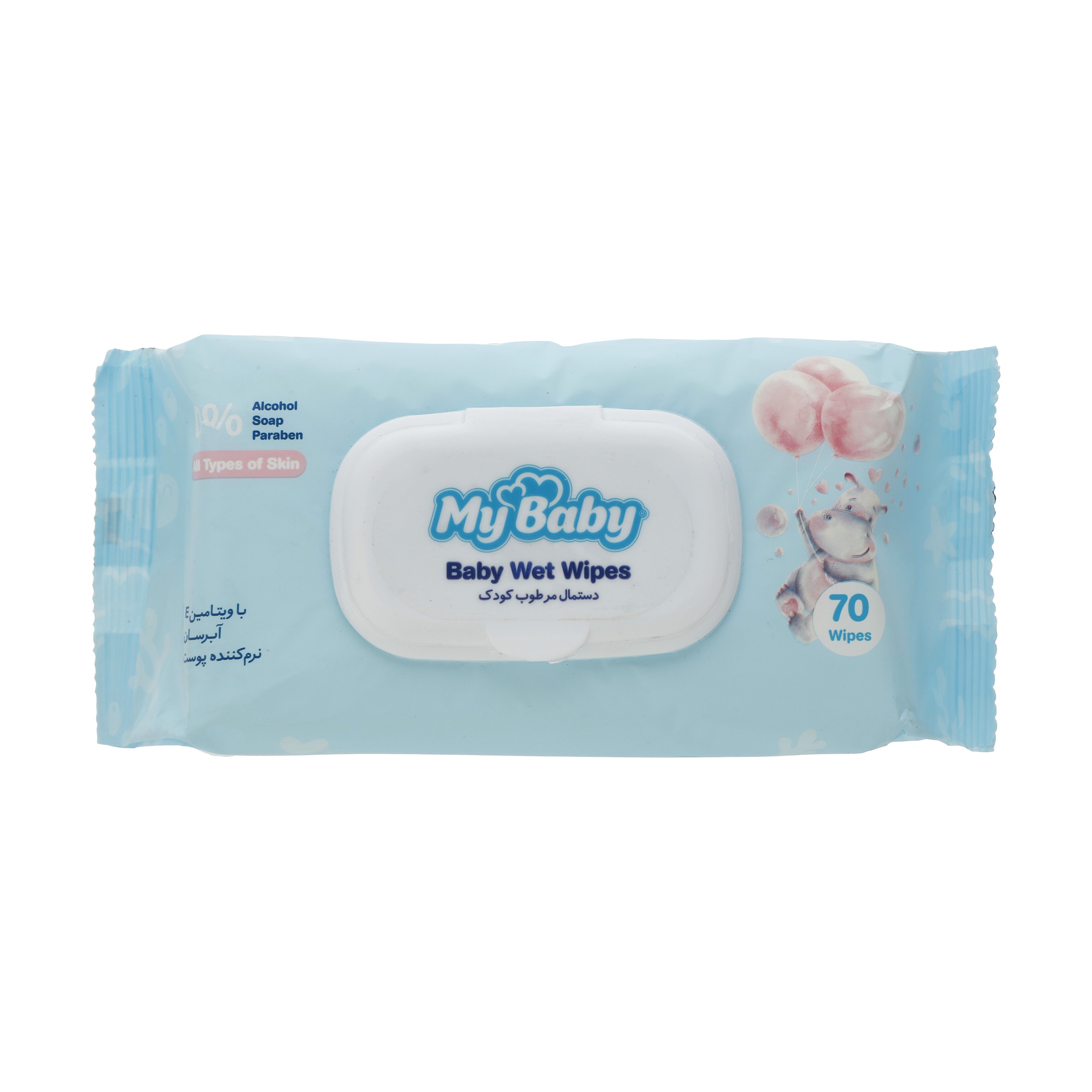 دستمال مرطوب کودک مای بیبی مناسب برای انواع پوست بسته 70 عددی