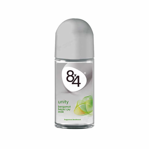 رول ضد تعریق مردانه هشت در چهار مدل یونیتی بدون الکل می باشد و از تعریق بدن جلوگیری می کند، این رول با رایحه چای سفید، مشک و ترنج، که در ابتدا عطر انرژی بخش ترنج و چای سفید به مشام می رسد، سپس عطر ملایم و خوشایند مشک باقی می ماند.