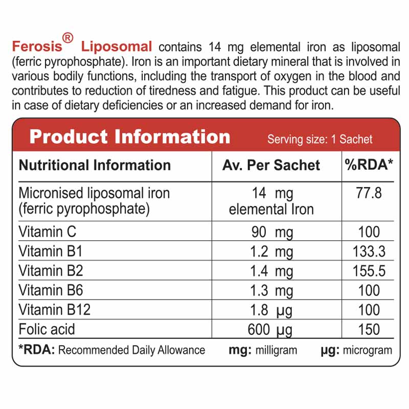 این محصول تحت لیسانس کمپانی Vitapharmed سوئیس است و در کارخانه داروسازی روزدارو تولید و بسته بندی شده است. ساشه لیپوزومال فروسیس ویواتیون یک مکمل غذایی برای ساخت گلبولهای قرمز خون است. مصرف این مکمل موجب تامین انرژی و کاهش خستگی میشود. ساشه لیپوزومال فروسیس ویواتیون با طعم دلپذیر انگور سیاه تولید و عرضه میشود.