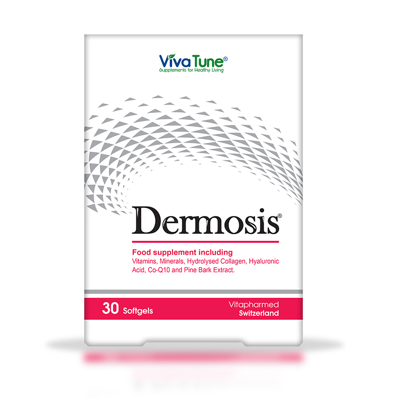 مـکمل غـذایی شامل، ویـتامین، میـنرال، کـلاژن هیدرولیز شده، هیالورونیک اسید، کوآنزیم کیوتن، و عصاره پوست درخت کاج درموسیس حاوی کلاژن و هیالورونیک اسید به عنوان اجزا حیاتی ساختار بافت همبند، در ترکیب با عصاره پوست درخت کاج، ویتامین ها و مواد معدنی ضروری است که فرمول منحصر به فرد جهت حمایت از پوست، مو و ناخن فراهم می نماید. ویتامین A و روی در حفظ نرمال پوست نقش دارد. ویتامین C همچنین به تشکیل طبیعی کلاژن برای عملکرد طبیعی پوست کمک می کند. روی و سلنیوم به حفظ نرمال مو و ناخن ها کمک می کند. علاوه بر این، سلنیوم، روی، ویتامین C و ویتامینE در حفاظت از سلول ها در برابر استرس اکسیداتیو کمک می کند.