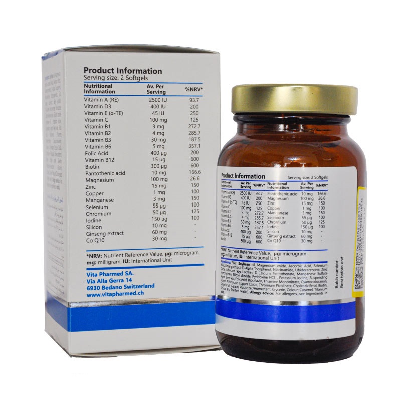 سافت ژل مولتی فور هیم مخصوص آقایان ویتالی تون حاوی ترکیبی از انواع مواد معدنی و ویتامینها است که علاوه بر تامین نیازهای روزانه سبب حفظ سلامتی و افزایش انرژی و شادابی بدن میشود. این مکمل گیاهی با دارا بودن جین سینگ و فلاونوئیدهای گیاهی در پیشگیری از انواع سرطان نیز موثر است. همچنین گیاه جینسینگ موجود در مکمل ویتالی تون حاوی ماده موثر جین سنوزیدها است. این ماده سبب افزایش قوای جنسی و تحرک اسپرم و در نهایت افزایش قدرت باروری در مردان میشود. مصرف این فراورده قادر است در بهبود ناتوانیهای جنسی نقش موثری داشته باشد. ویتامینهای A، C و E و همچنین روی و سلنیوم موجود در مولتی فور هیم مخصوص آقایان ویتالیتون آنتی اکسیدانهای قوی هستند. این سری ترکیبات با کاهش رادیکالهای آزاد و زیان آور در بدن، حفظ سلامت و پیشگیری از بیماریها را بر عهده دارند.