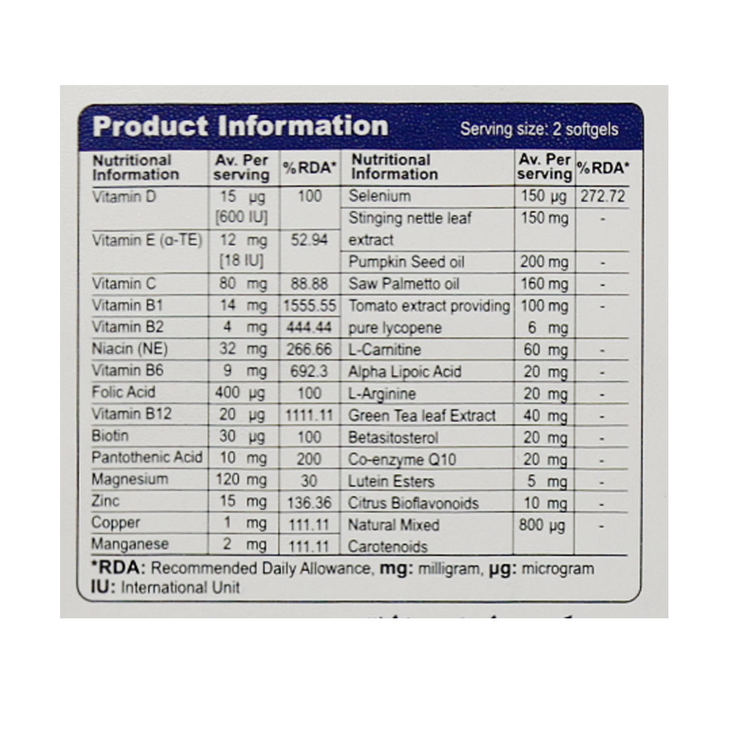 ترکیبات گیاهی موثر: گیاه گزنه به کار رفته در این فراورده برای بهبود بیماری سرطان پروستات مفید است. گزنه یکی از رایجترین گیاهان دارویی است که اثرات ضد التهابی، ضد ویروسی و ضد توموری دارد. آزمایشات نشان داده است که این گیاه ترکیباتی مانند فیتواسترولها، لیگنانها و پلی ساکاریدها را از بین میبرد و علائم هیپرپلازی خوش خیم سرطان را رفع میکند. دانه کدو نیز ترکیب دیگری است که مدتها است برای سلامت مردان پیشنهاد میشود. تخم کدو سرشار از فسفر، منیزیم، پتاسیم، کلسیم و روی است. از این رو گفته شده که نقش مهمی در پیشگیری از سرطان دارد. ترکیبات دیگری همچون گوجه فرنگی، نخل اره ای و …نیز در این امر موثر هستند.