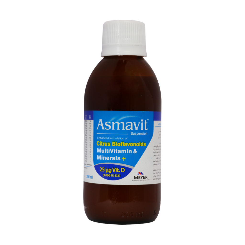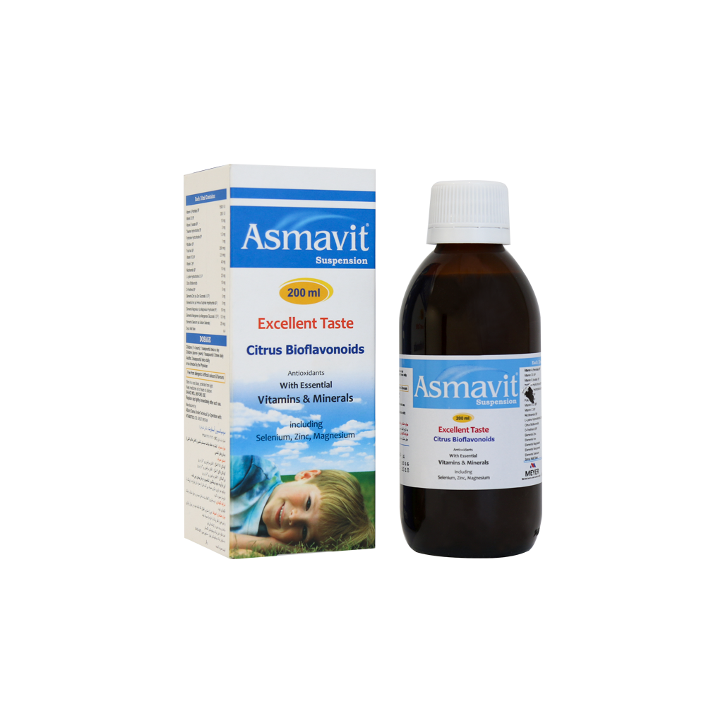 شربت Asmavit یک فرمولاسیون پیشرفته برای حفاظت از سیستم تنفسی است که شامل انواع آنتی کسیدان ها از جمله انواع ویتامین ها از قبیل ب کمپلکس، ویتامین A ، ویتامین D ، ویتامین E و ویتامن C به همراه مواد معدنی شامل سلنیوم ، منگنز، منیزیم ، آهن و روی می باشد که با افزایش مقاومت بدن به جلوگیری و پیشگیری از بیماری ها و عفونت های سیستم تنفسی ، کاهش علائم ناشی از آلرژی و حساسیت فصلی و تقویت تنفس کمک شایانی می کند.آسماویت سیستم ایمنی بدن را تقویت کرده ، عملکرد کلی ریه ها را بالا برده و کمک می کند تا تورم مجاری تنفسی برطرف شود