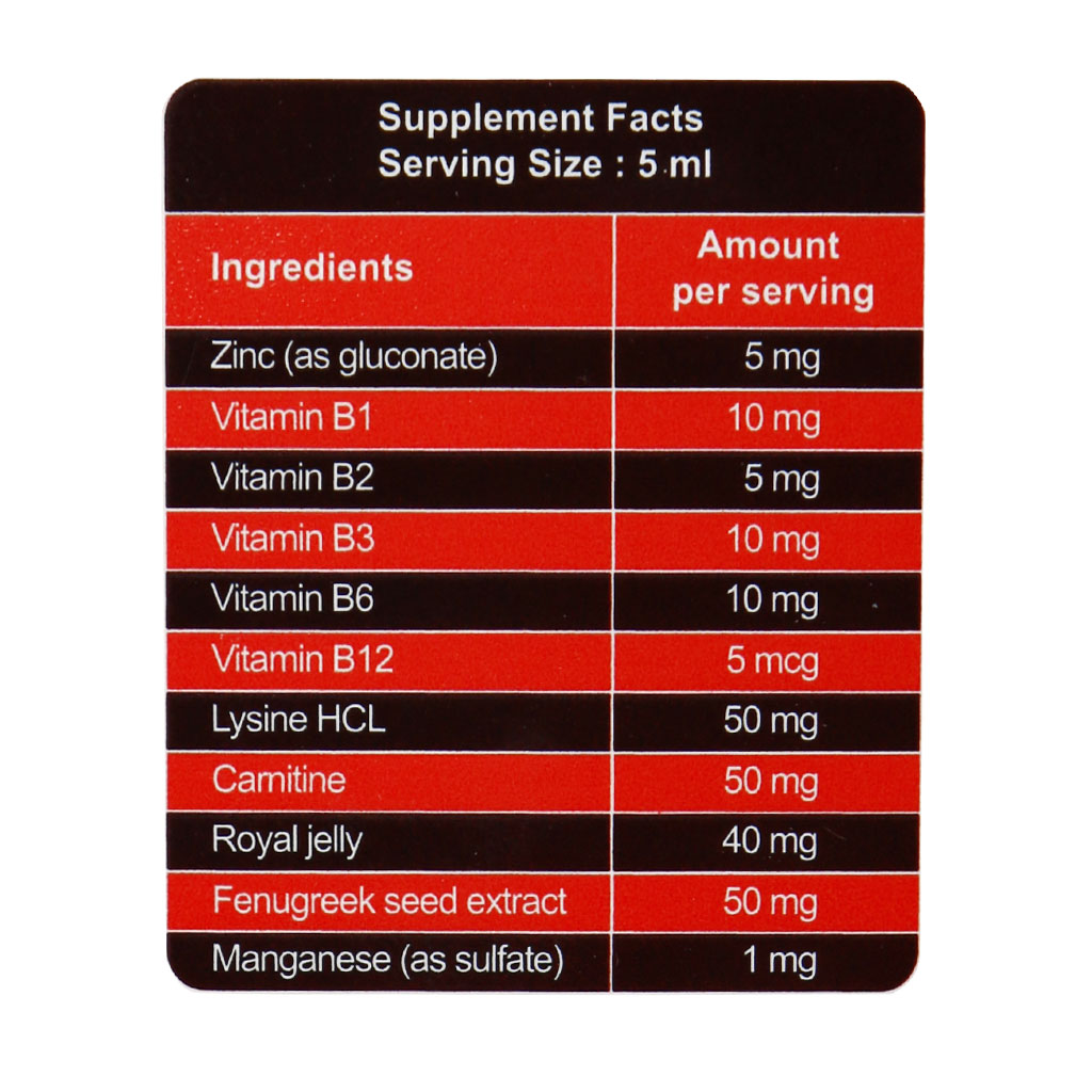 - شربت تریس اوریکس، حاوی ویتامین های B1 ،B2 ،B3 ،B6 ،B12، زینک، منگنز، لیزین، کارنیتین، رویال ژلی و عصاره گیاه شنبلیله