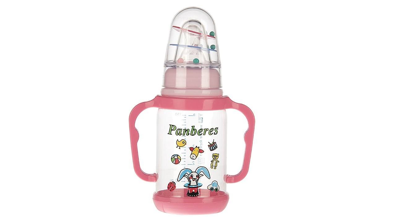 شیشه شیر دومینو دسته دار متوسط 150 میلی لیتر جغجغه ای