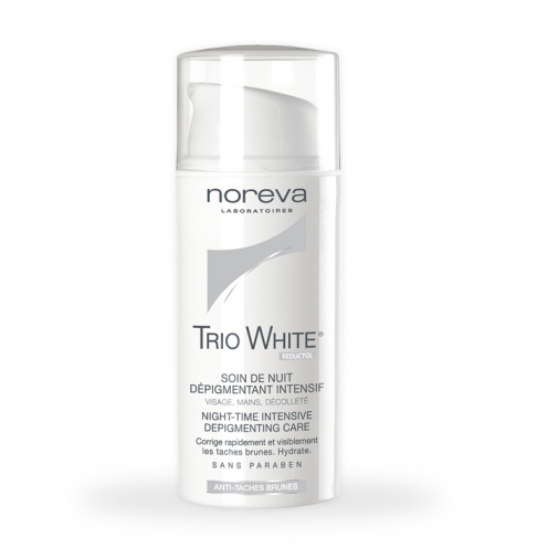 تریو وایت شب : درمان سریع و قابل مشاهده لک های مزمن صورت، دست و دکلته برای درمان سریع لک های قهوه ای در هر نوع پوست حتی پوست بسیار حساس ارائه شده است. ضد لک شب تریو وایت در طول شب با مهار تولید ملانین تاثیر قابل ملاحظه ای روی لک ها دارد. از ایجاد لک های جدید جلوگیری می کند، لک های موجود در روی پوست، دست و دکلته روز به روز کاهش می یابد همزمان با ضد لک روز سبب افزایش رطوبت پوست و یکدست شدن رنگ چهره به مدت طولانی میشود.
