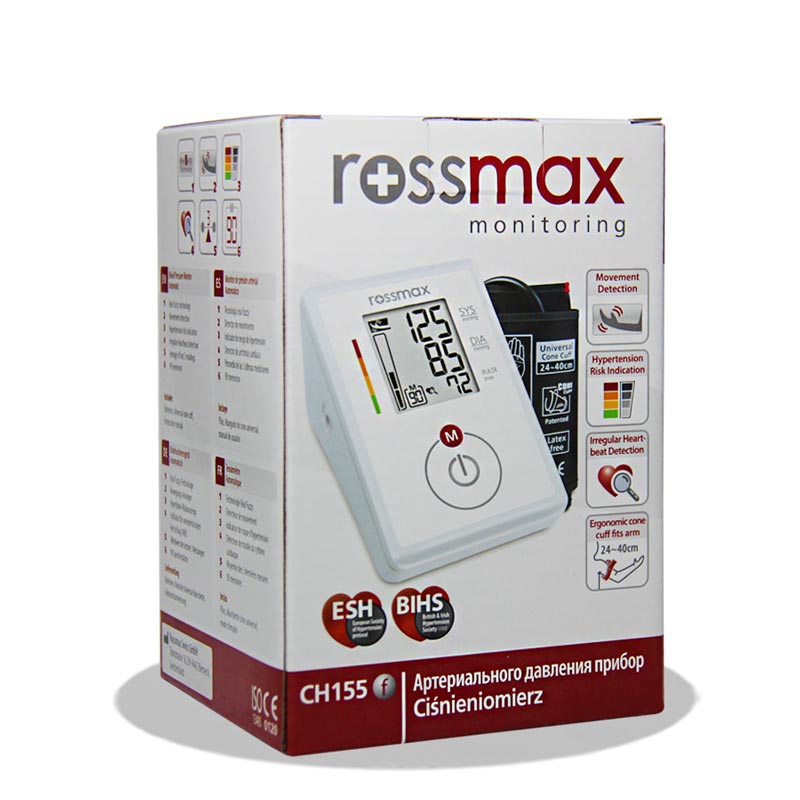 فشارسنج «رزمکس» (Rossmax) مدل «CH155f» از نوع بازویی بوده و دارای سیستم تشخیص حرکت، آشکارساز ضربان نامنظم قلب و حافظهی ذخیرهسازی 90 فشار اندازهگیری شده است. این فشارسنج به سیستم تشخیص حرکت مجهز شده است. چنانچه هنگام اندازهگیری فشار، دست شخص تکان بخورد علامت خاصی روی صفحه به نمایش درمیآید که نشان میدهد اندازهگیری دقیق نیست و باید دوباره انجام شود. علاوه بر این دستگاه مجهز به آشکارساز ضربان نامنظم قلب (IHB) است که درصورتیکه ضربان قلب شخص نامنظم باشد روی صفحه نشان داده میشود. این فشارسنج از روش اوسیلومتری برای تعیین فشارخون استفاده میکند.