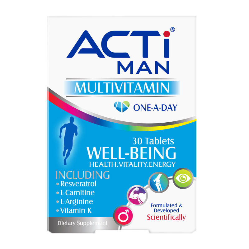 مولتی ویتامین مخصوص آقایان فرمولاسیون این محصول شامل ترکیبی از رزوراترول، ال-کارنیتین، ال آرژنین، جینسینگ، اسیدهای آمینه، ویتامین ها و مواد معدنی ضروری است. اکتی من سبب افزایش انرژی بدن، افزایش توده عضلانی، تقویت قوای جنسی، حفظ سلامت سیستم ایمنی و سیستم قلبی-عروقی بدن در آقایان می گردد.