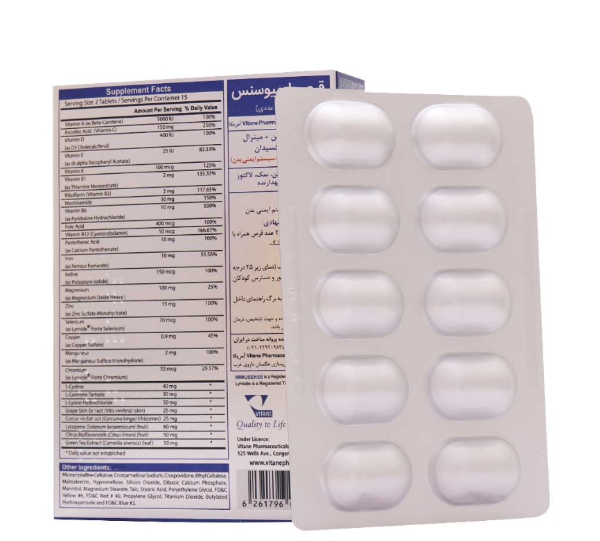 • قرص immusense، دارای خواص آنتی اکسیدانی و مقابله کننده با اثرات رادیکال های آزاد