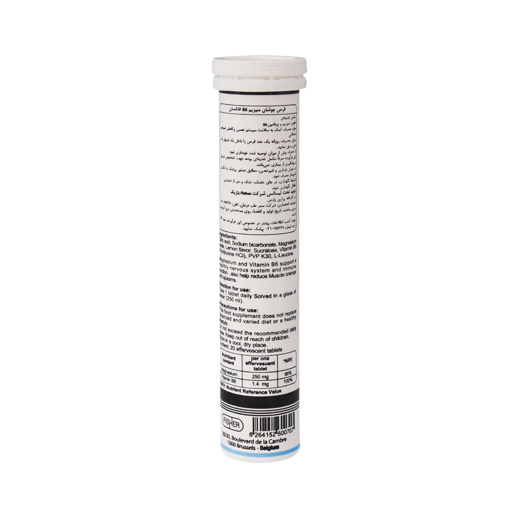 قرص جوشان منیزیم و ویتامین B۶ فیشر فلکسان فاقد شکر بوده و به تامین منیزیم و ویتامین ب ۶ مورد نیاز بدن و پیشگیری از حملههای میگرنی کمک زیادی میکند.