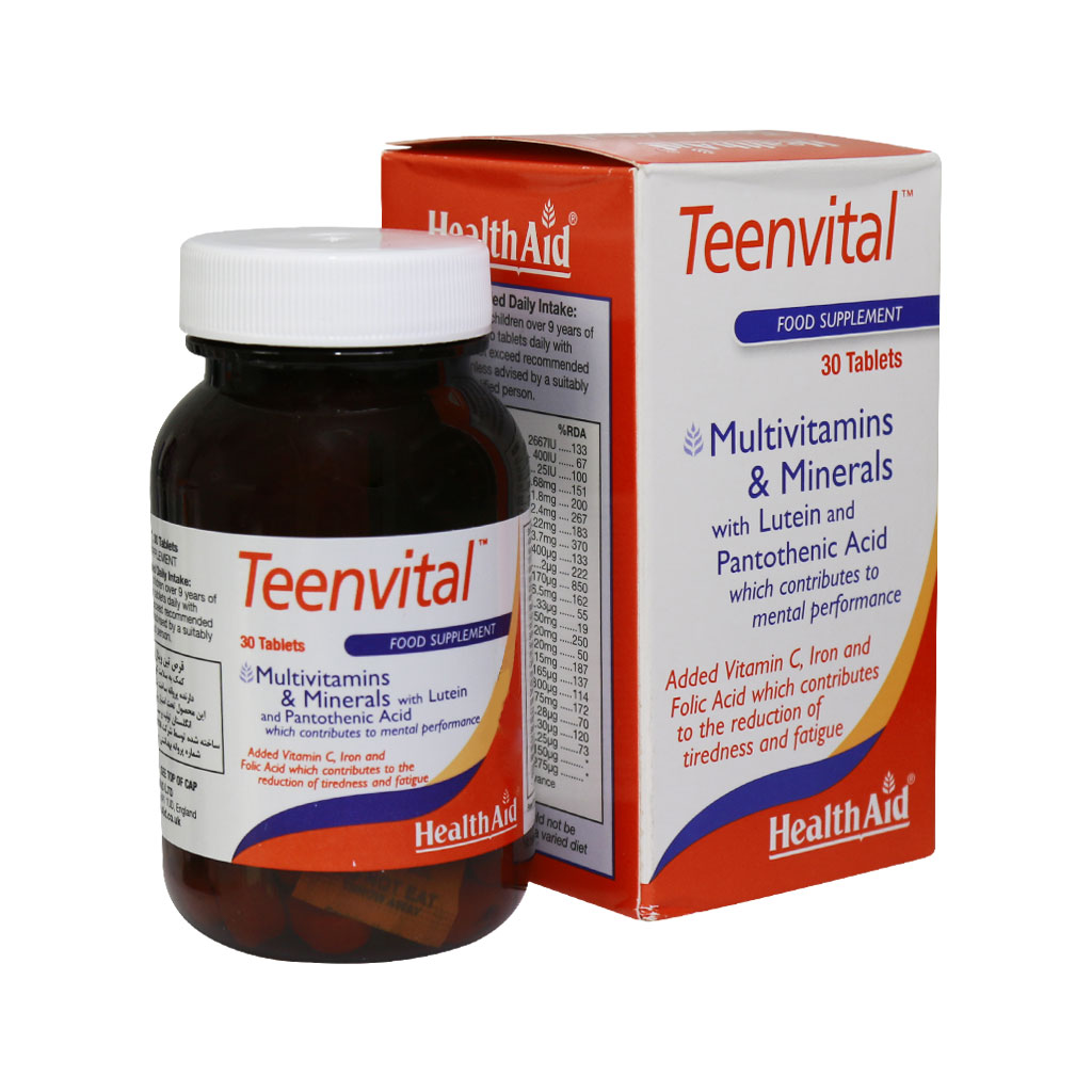 قرص مولتی ویتامین مینرال تین ویتال هلث اید برای نوجوانان فرموله شده است. به دلیل اینکه در سالهای نوجوانی نیاز بدن با توجه به استرس بسیار زیاد، بلوغ و فشارهای آموزشی افزایش مییابد، مصرف این فراورده موثر است.