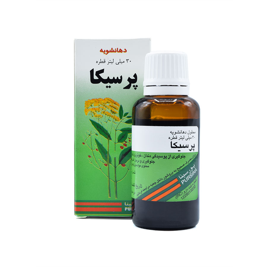 قطره پرسیکا پورسینا دهانشویه ای گیاهی است که نقش موثری در جلوگیری از پوسیدگی دندان، افزایش جرم دندان و جلوگیری از امراض لثه دارد. دهانشویه پرسیکا در درمان آماس و جلوگیری از خونریزی لثه و خونریزی پس از کشیدن دندان نقش موثری دارد.