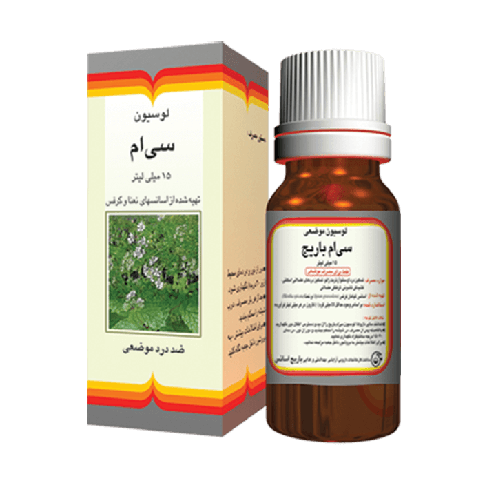 لوسیون سی ام باریج اسانس حاوی اسانس نعنا و کرفس بوده که در تسکین دردهای عضلانی، اسکلتی، درد استئوآرتریت، کشیدگی تاندونی و گرفتگی عضلانی موثر است.
