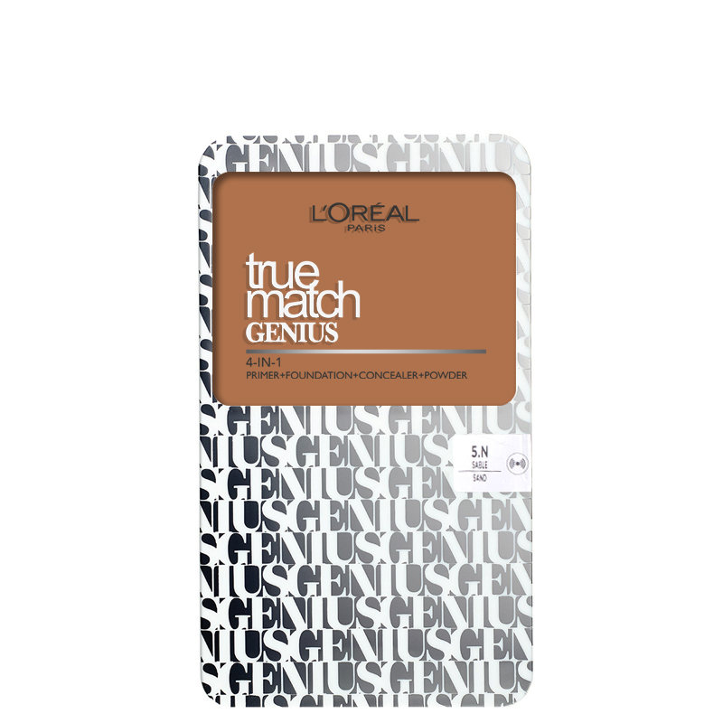كرم پودر فشرده 4 در 1 جینیوس لورال پاریس مدل True Match Genius با SPF30 شماره 5N- گندمی