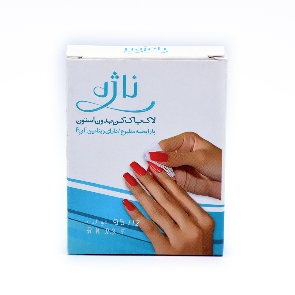 اخیرا پاک کننده های دیگری که بدون استون (Acetone Free) نام دارند به بازار آمده اند که در آنها اتیل استات را جایگزین استون کرده اند اما حقیقیت این است که هر دو آنها حاوی مواد شیمیایی مشابهی هستند که می توانند سبب بروز مشکلات تنفسی گردند. مواد اولیه مورد استفاده در لاک پاک کن ناژه مطابق با استاندارد (USP(United State Pharmacopeia مرجع دارو شناسی آمریکا و وزارت بهداشت جمهوری اسلامی ایران می باشد. از جمله مزایای لاک پاک کن ناژه معطر وسبک بودن آن است که در بسته بندی های بهداشتی به بازار عرضه گردیده ونیاز به پنبه ندارد وهمانند سایر لاک پاک کن ها فرار نیست. این محصول حاوی ویتامین های DEXPANTHENOL B5 -Eمی باشد که ترمیم کننده وموجب رشد بهتر واستحکام ناخن ها میگردد.