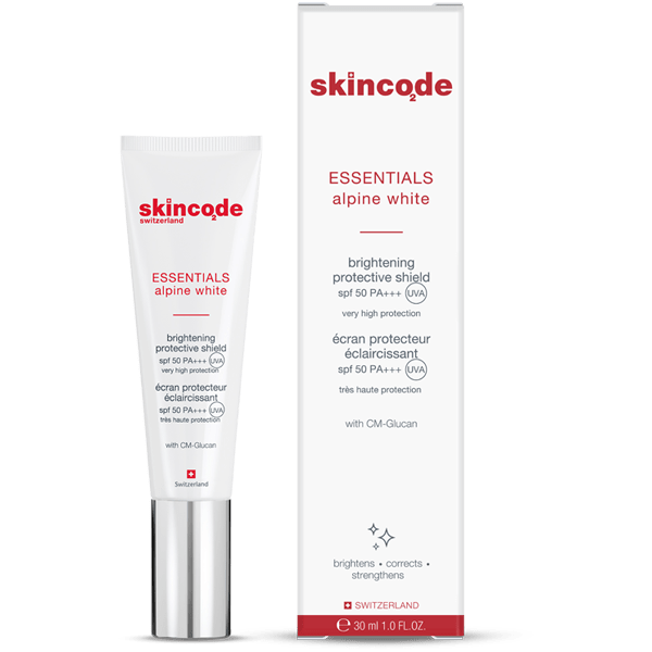 (Brightening protective shield spf50 - Skincode) از سری محصولات اسنشیال اسکین کد مدل ALPINE WHITE حاوی ترکیب CM-GLUCAN جهت تقویت سیستم ایمنی، ترمیم زخم و بهبود التهاب و با توانایی در ترمیم و بازسازی پوست می باشد.