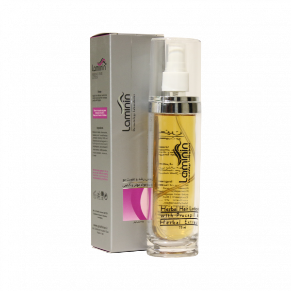 محلول تقویت مو لامینین حاوی مواد موثره طبیعی که از از ریزش مو جلوگیری نموده و به رویش مجدد مو کمک می نماید. همچنین به بازسازی و ترمیم ساقه های آسیب دیده و ریشه مو می پردازد.