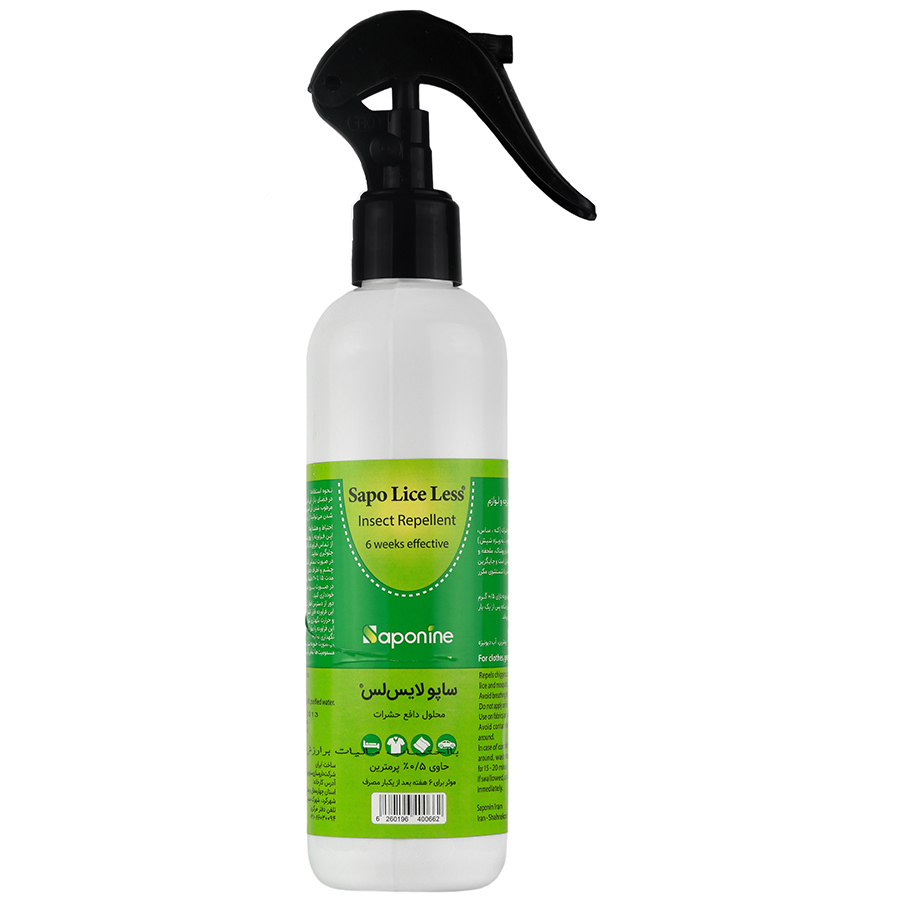 اسپری دافع حشرات ساپو لایس لس برای محافظت طولانیمدت در برابر طیف وسیعی از حشرات از جمله کنه، شپش و پشه طراحی شده. اسپری ضد شپش ساپو لایس لس با الیاف مصنوعی و ضد آب سازگار بوده و برای استفاده در داخل و خارج از خانه مناسب است