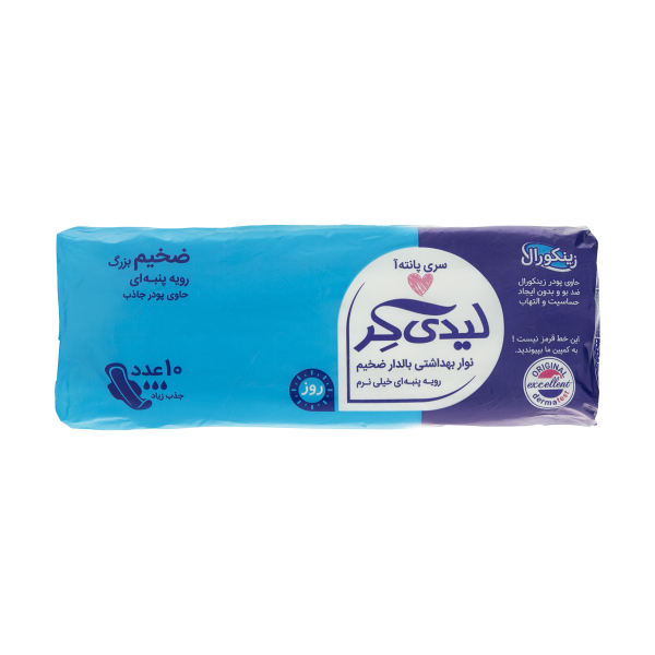وار بهداشتی لیدی کر سری پانته آ مدل ضخیم با رویه پنبه ای سایز بزرگ بسته 10 عددی مناسب برای استفاده در روز با جذب بالا و ضخامت 15 میلی لیتر و حاوی 10 عدد در هر بسته است. سایز بزرگ این محصول این اجازه را به مصرف کننده می دهد که با خیالی آسوده به فعالیت های خود بپردازد، هر چند نوار بهداشتی های سایز بزرگ بیشتر برای استفاده در روز می باشند اما چنانچه میزان خون ریزی زیاد باشد می توان از آنها در طی شب نیز استفاده کرد. این محصول حاوی پودر زینکورال (ضد بو و بدون ایجاد حساسیت و التهاب) می باشد و با جذب بالای مایعات، هیچگونه حساسیتی ایجاد نمی کند.