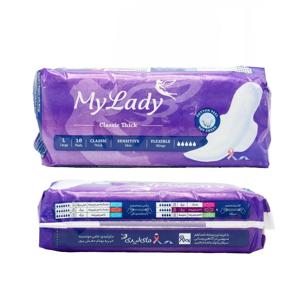 نوار بهداشتی مای لیدی کلاسیک ضخیم پنبه ای بزرگ 10 عددی