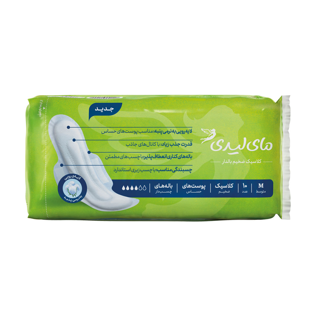 نوار بهداشتی مای لیدی کلاسیک ضخیم پنبه ای متوسط 10 عددی