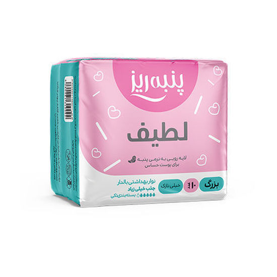 نوار بهداشتی نازک لطیف بالدار سایز بزرگ پنبه ریز 10عددی