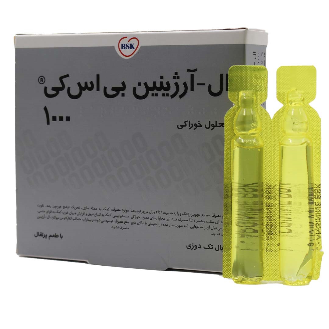 آرژنین در شرایط عادی به میزان کافی در بدن تولید میشود اما در شرایط ویژه نظیر فعالیت بدنی زیاد، جراحت، سوختگی و عفونت شدید، نیاز بدن به این اسید آمینه افزایش مییابد. ممکن است در برخی مواقع مقدار تولید شده در بدن برای رفع نیاز کافی نباشد و باید از طریق دریافت مکمل غذایی تکمیل شود. ویال ال-آرژنین ۱۰۰۰ میلی گرم بی اس کی نیاز بدن به این عنصر حیاتی را برطرف میسازد. همچنین این آمینو اسید قادر به پاکسازی رادیکالهای آزاد از خون، بهبود عملکرد سیگنالهای سلولهای عضلانی، رها سازی هورمون رشد، حمایت از کلسترول خوب و تنظیم متابولیسم چربی و سطح نمک در بدن است.