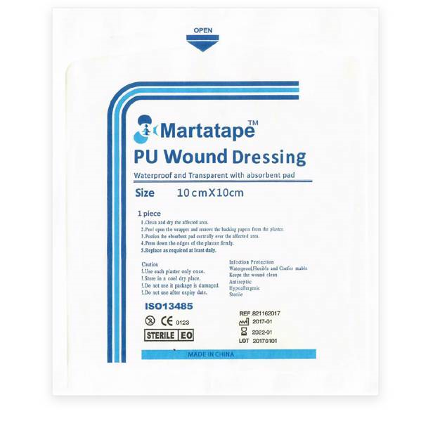 پانسمان آماده شفاف و ضد آب مارتاتاپ برای زخم هایی که از فاز التهابی گذشته وارد فاز پرولیفراتیو شده اند، و پانسمان زخم های نسبتا کم عمق مانند محل اهدای پوست زخم های جراحی است.