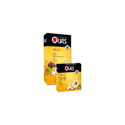 کاندوم اورس تاخیری حلقه ای میوه ای 12 تایی OURS HELIX حاوی مواد روان کننده بیشتر جهت مقاربت بدون درد شیارهای آناتومیک جهت تحریک جی اسپات ( نقطه جی) G SOPT و لذت فراوان حاوی مواد موثر تاخیری (بنزوکائین) برای جلوگیری و کنترل انزال زودرس اسانس تحریک کننده و گرم چند میوه دارای مخزن ذخیره جهت اطمینان بیشتر و امنیت بیشتر ساخته شده از لاتکس طبیعی