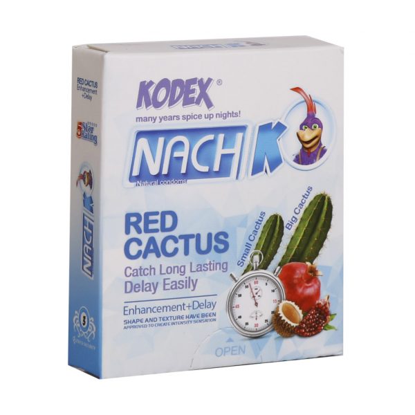 کاندوم تاخیری ناچ کدکس مدل رد کاکتوس با ایجاد تاخیر در انزال موجب افزایش لذت جنسی میشود. این محصول از جنس لاتکس طبیعی ساخته شده است.