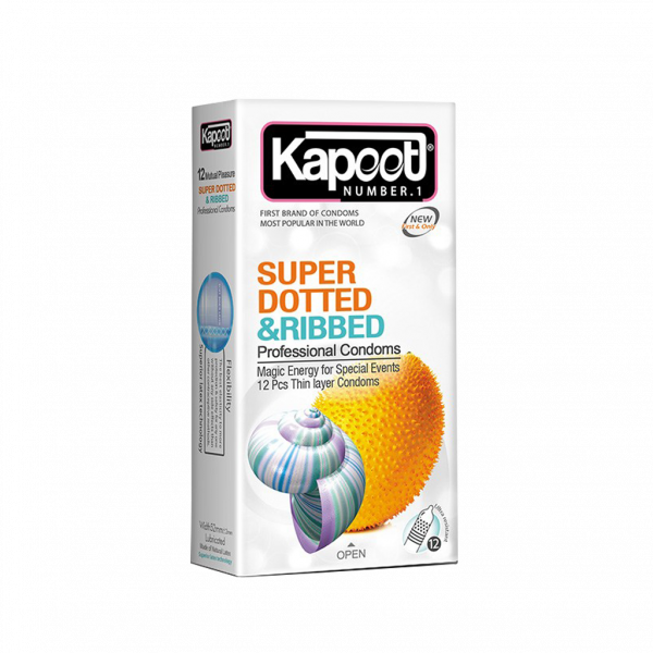 کاندوم خاردار و شیاردار کاپوت مدل Super Dotted And Ribbed تعداد ۱۲ عدد