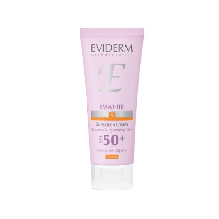 کرم ضد آفتاب رنگی spf50 مناسب پوست های دارای لک و روشن کننده اویدرم 40 میلی لیتر Eviderm Eviwhith Tinted SunScreen Cream SPF50 For Spotted & Lightening Skin 40ml، این محصول برای درمان لکهای صورت می باشد. به علاوه بواسطه وجود ترکیباتش یک آنتی اکسیدان قوی می باشد که دارای خاصیت روشنکنندگی است. عملکرد این کرم به گونه ای است که به سرعت در پوست پخش شده، بافت سبک و جذب بالایی داشته، برای انواع پوست مناسب می باشد و به دلیل خاصیت رنگی بودن قابلیت پوشانندگی نیز دارد. این کرم دوکاره است، یعنی ضمن محافظت بالا در برابر اشعه مضر UVA و UVB، به عنوان یک ضد لک و روشن کننده پوست عمل می کند. همچنین کرم ضد آفتاب ضد لک اویدرم ضد التهاب نیز می باشد.
