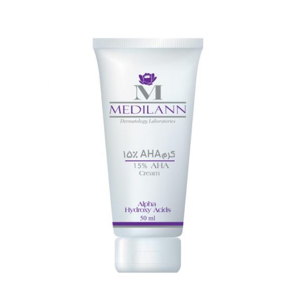 کرم لایه بردار AHA ۱۵ درصد مدیلن حاوی آلفا هیدروکسی اسید است. این ماده به صورت کمپلکسی از چندین میوه ساختار پوست را ظریف و روشن کرده و فرآیند لایه برداری از اپیدرم، جوانسازی پوست، تحریک تولید سلولهای جدید، روشن سازی، افزایش رطوبت پوست را به دنبال دارد. آلفا هیدروکسی اسید گروهی از اسیدهای به دست آمده از گیاهانی همچون پرتقال (اسید آسکوربیک)، لیمو (اسید سیتریک)، نیشکر (اسید گلیکولیک)، انگور (اسید تارتاریک) و سیب (اسید مالیک) است که بر اساس تحقیقات انجام شده سبب افزایش پوسته ریزی طبیعی پوست و در نتیجه جداسازی لایه خارجی پوست میشود. از جمله مزایای دیگر این محصول میتوان به افزایش کلاژن سازی و کاهش چروکهای پوستی آن اشاره نمود.