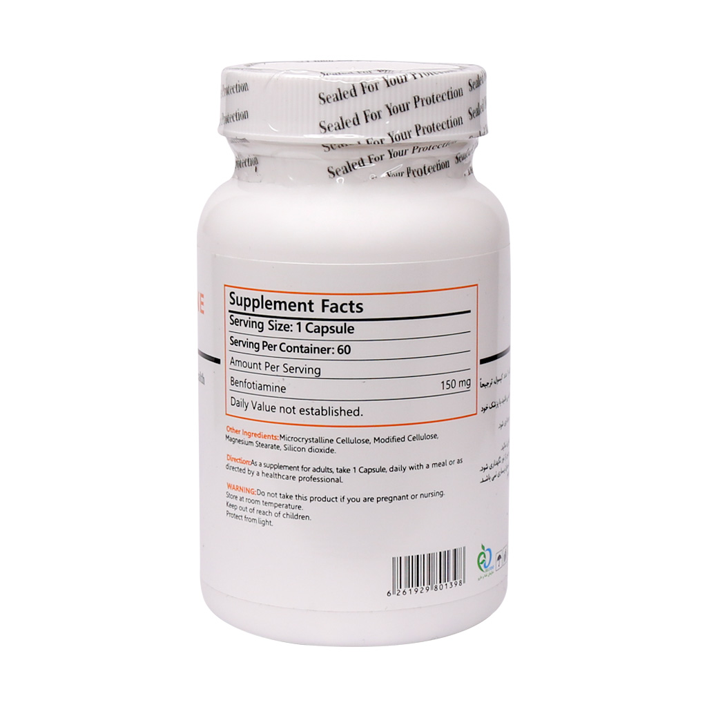 در جواب کپسول بنفوتیامین برای چیست؟ باید گفت کپسول بنفوتیامین برونسون مکملی منحصر به فرد برای افزایش کارایی بدن و کمک به سلامت سیستم عصبی است. قرص بنفوتيامين به جذب مواد مغذی محلول در چربی کمک میکند و نقش موثری در بهبود متابولیسم و سوخت و ساز بدن دارد. اگر درباره خواص قرص بنفوتیامین به اطلاعات بیشتری احتیاج دارید باید بگوییم که Benfotiamine از نظر شیمیایی یک آنالوگ ویتامین B۱ است. این ویتامین تاثیرات بسیار مهمی در متابولیسم قندها در بدن و عملکرد اعصاب دارد. همچنین از راه روده جذب خون شده و تغییراتی بر روی آن صورت میگیرد و آماده استفاده بافتها میشود. مغز انسان از این ویتامین برای کمک تبدیل قند خون به سوخت و انرژی برای فعالیتهای روزمره استفاده میکند و کمبود آن میتواند به خستگی، افسردگی، تندخویی، زودرنجی، اضطراب منجر شود.