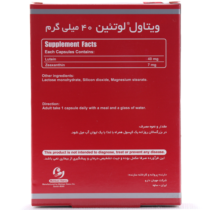 کپسول لوتئین 40 میلی گرم ویتاول 30 عددی