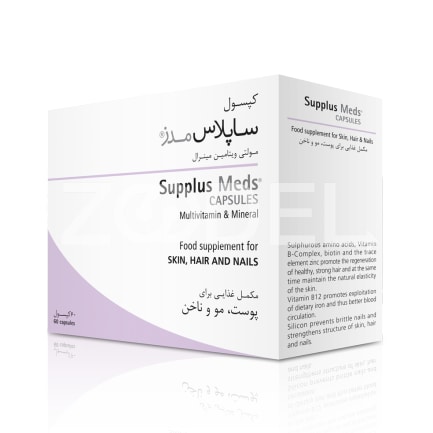 کپسول مولتی ویتامین مینرال ساپلاس مدز حاصل دانش و تجربه ۲۰ ساله پزشکان و پژوهشگران متخصص اروپایی و ایرانی است. این مکمل با فرمولاسیون نوین، تامین کننده تمامی عناصر حیاتی و کمیاب مورد نیاز پوست، مو و ناخن است. استفاده از ریز مغذیهای ضروری مانند بیوتین و روی در کنار آنتیاکسیدانهای مهمی مانند ویتامین E و C در فرمولاسیون مکمل ساپلاس مدز حفظ سلامت و زیبایی پوست، مو و ناخن را تضمین مینماید. آنتیاکسیدانهای به کار رفته در فرمولاسیون مولتی ویتامین مینرال ساپلاس مدز بدن را در برابر رادیکالهای آزاد محافظت مینماید، در نتیجه فرآیندهای موثر در روند پیری پوست را به تاخیر میاندازد. وجود ویتامین A، روی، منگنز، سیلیکون و کوفاکتورهای کراتین و کلاژن در این قرص مولتی ویتامین باعث تقویت و حفظ قابلیت ارتجاعی پوست میشود.