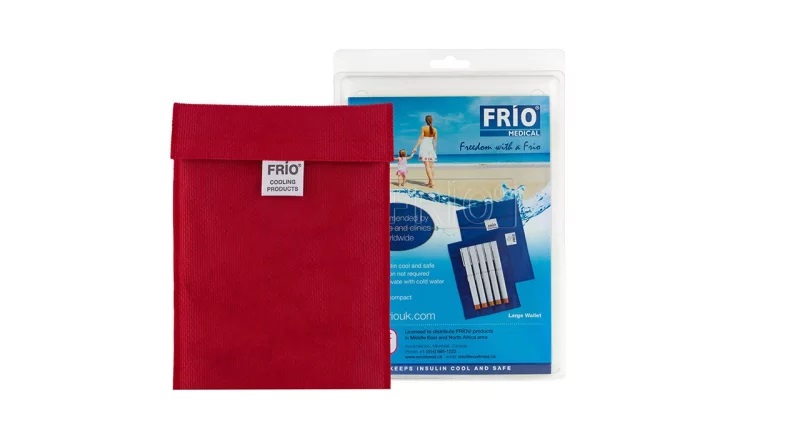 کیف خنک نگهدارنده فریو (Frio) یک کیف کارآمد است که برای نگهداری انواع مختلف دارو های خاص که دمای ویژه نگهداری دارند، استفاده میشود.. این محصول به علت نگهداری انسولین در دمای مناسب، بین افراد دیابتی بسیار محبوب میباشد. کیف خنک نگهدارنده انسولین از پارچه سبک آغشته به مواد خاصی تهیه شده است که میتواند دارو را در دمای مناسب نگهدارد. این کیف به راحتی در کوله پشتی، کیف دوشی و… قرار میگیرد و بسیار سبک و مقاوم است. جهت استفاده از کیف خنک نگهدارنده انسولین، کیف را درون یک سطل آب فرو ببرید. در دیواره کیف خنک نگهدارنده کریستال خاصی با فرمولاسیونی ویژه و حساس به رطوبت وجود دارد. وقتی کیف داخل آب قرار میگیرد این کریستالها آب را به خود جذب کرده و تبدیل به ژل میشوند. کریستاله شدن کیف انسولین در اصطلاح شارژ شدن کیف گفته میشود. با وجود فرآیند تبخیر آب رفته رفته آب درون کریستالها به وسیله جذب گرما از داروهای درون کیف تبخیر شده و از این طریق فضای داخل کیف نیز خنک میماند. کیف فریو مناسب برای ویال انسولین، قلم انسولین، پمپ انسولین و سایر تجهیزات تزریق انسولین نیز میباشد. این محصول دارای تاییدیه سازمان غذا و داروی آمریکا (FDA) بوده و راه حلی آسان و ارزان قیمت جهت حمل و نقل انواع داروها، مخصوصا انسولین، میباشد. کیف فریو دمای کیف را بین ۱۸ تا ۲۶ نگه میدارد ولی کارایی آن در دماهای بالاتر از ۳۰ درجه سانتیگراد کمی کاهش مییابد. کیف خنک نگهدارنده زمانی که به طور صحیح شارژ شود میتواند در دمای ۳۸ درجه سانتیگراد کیف را به مدت دو شبانهروز خنک نگه دارد. بسته به اینکه چگونه از کیف مراقبت و استفاده شود، میتوان بین یک تا یک و نیم سال از آن استفاده کرد.